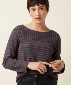 King Louie Women’s Discover Boatneck Yoke Top Britney Stripe | Porto Red – Britney Stripe