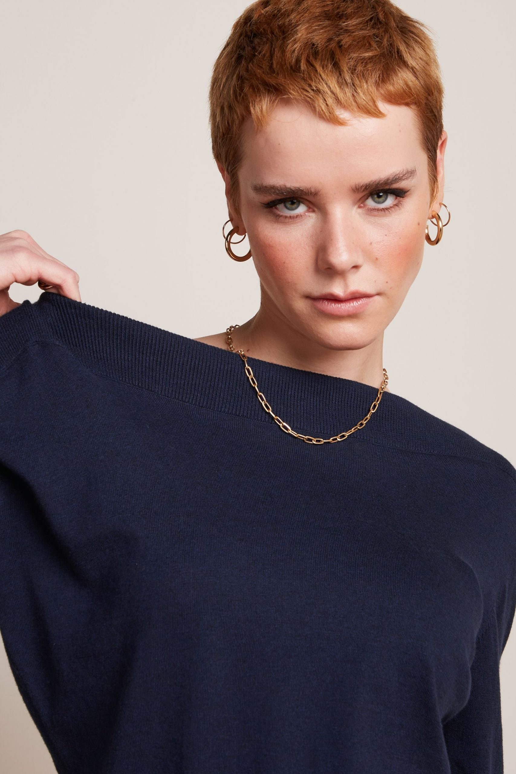 - Top with wide boat neck