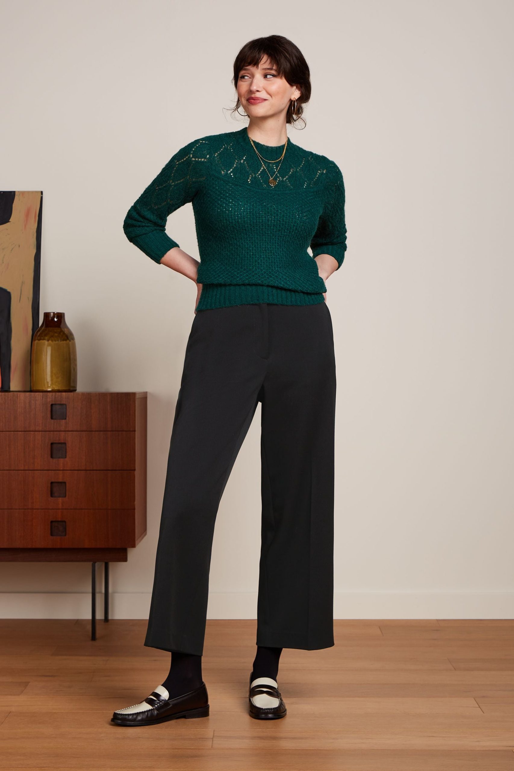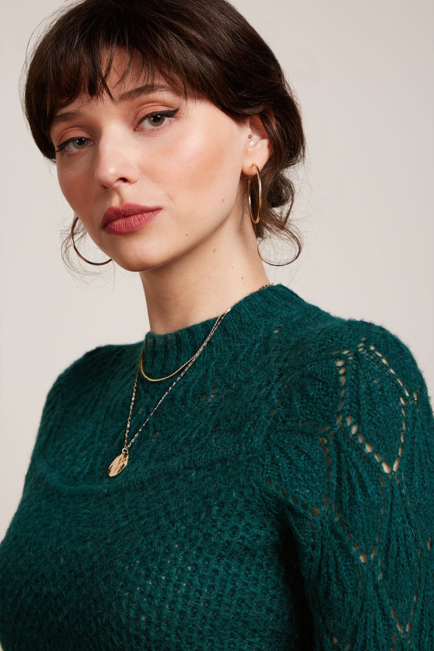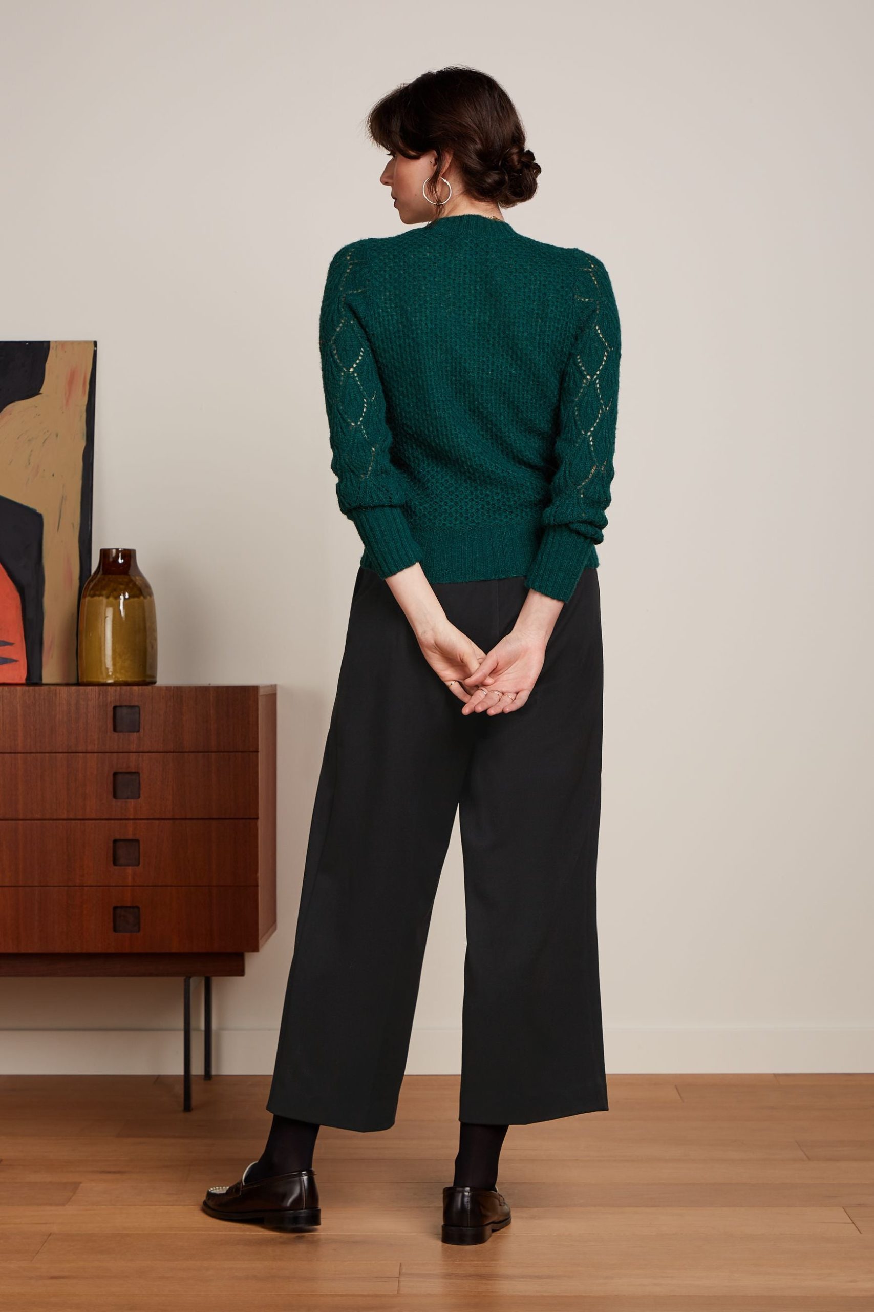 - Open-knit yoke and sleeves
