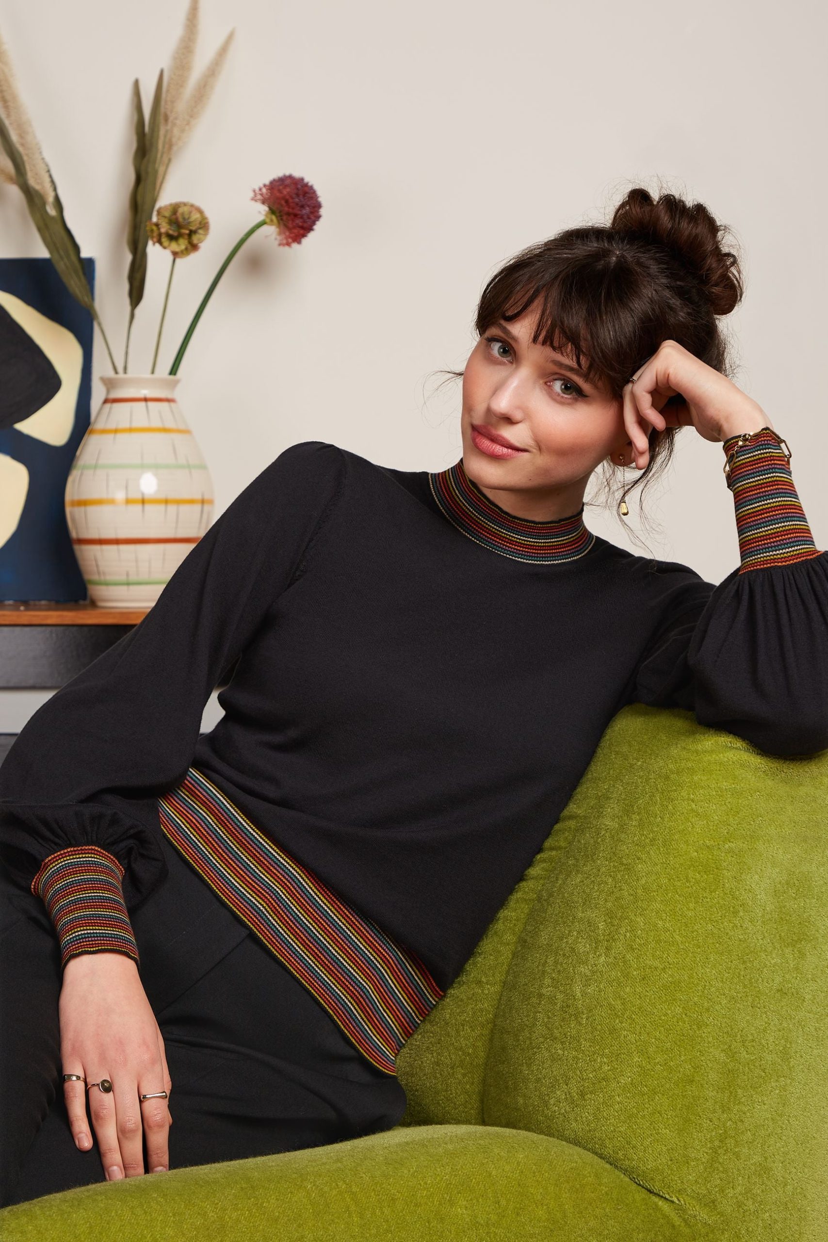 - Striped ribbed hem