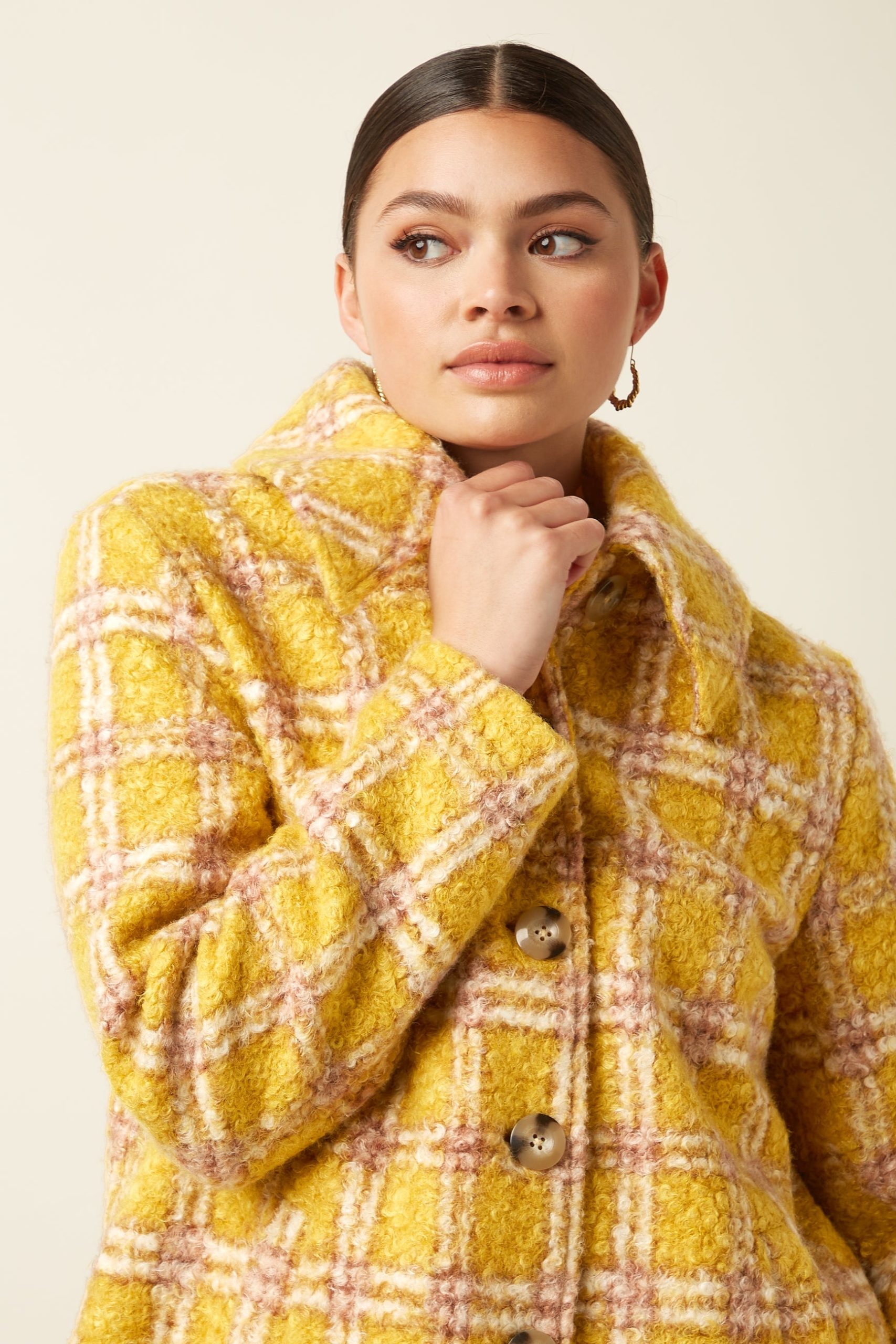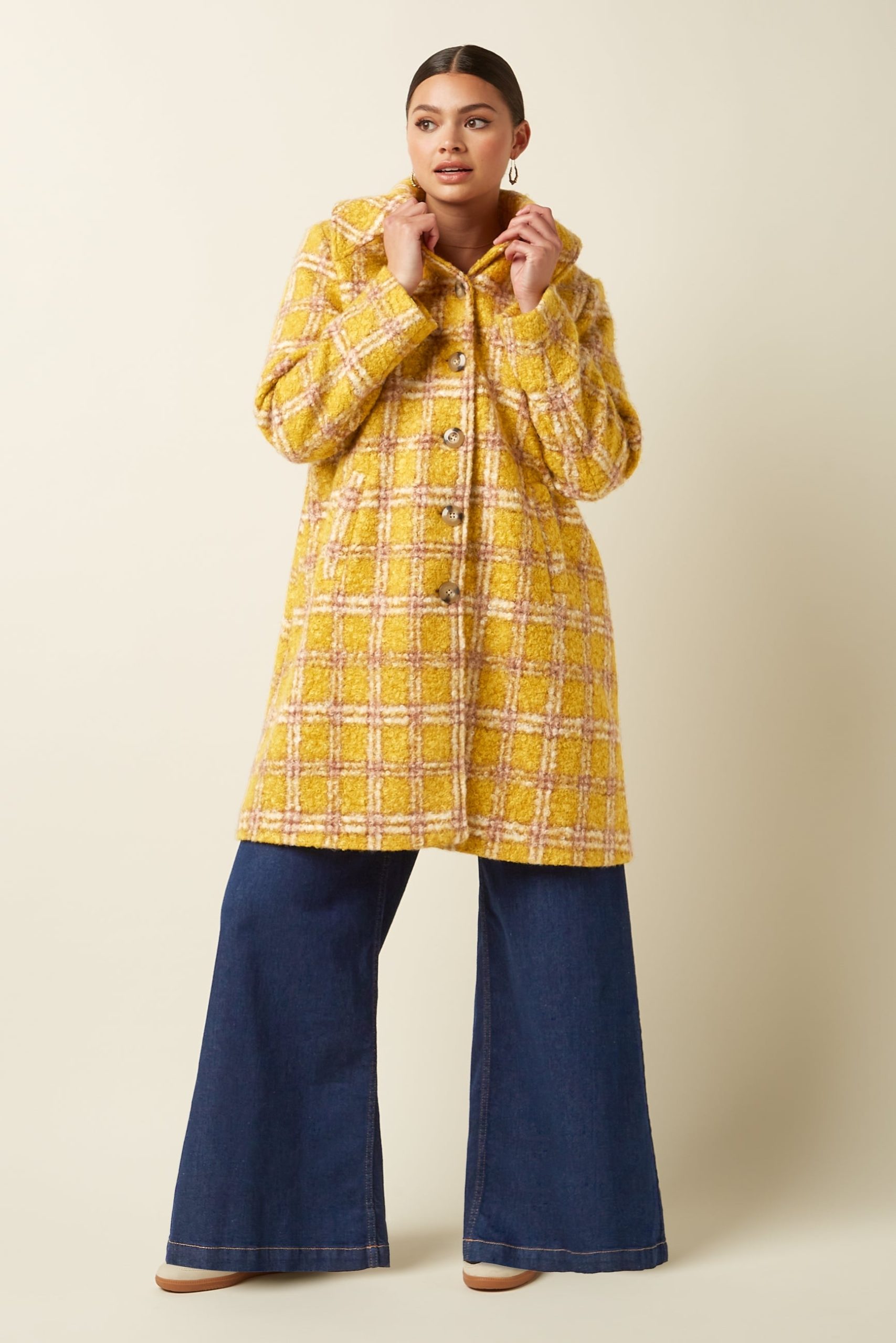 King Louie Women’s Products Anais Coat Mercury Check | Tuscan Yellow – Mercury Check