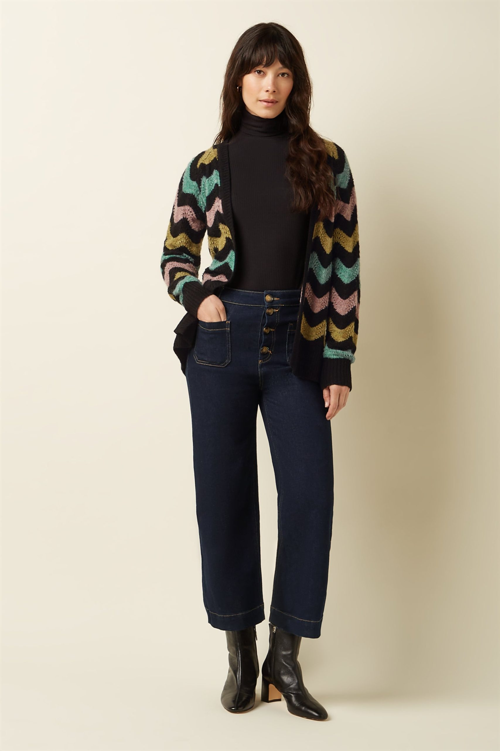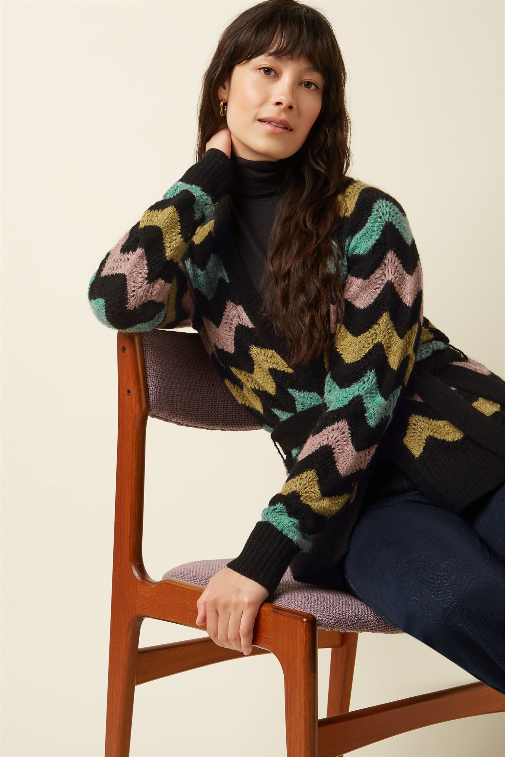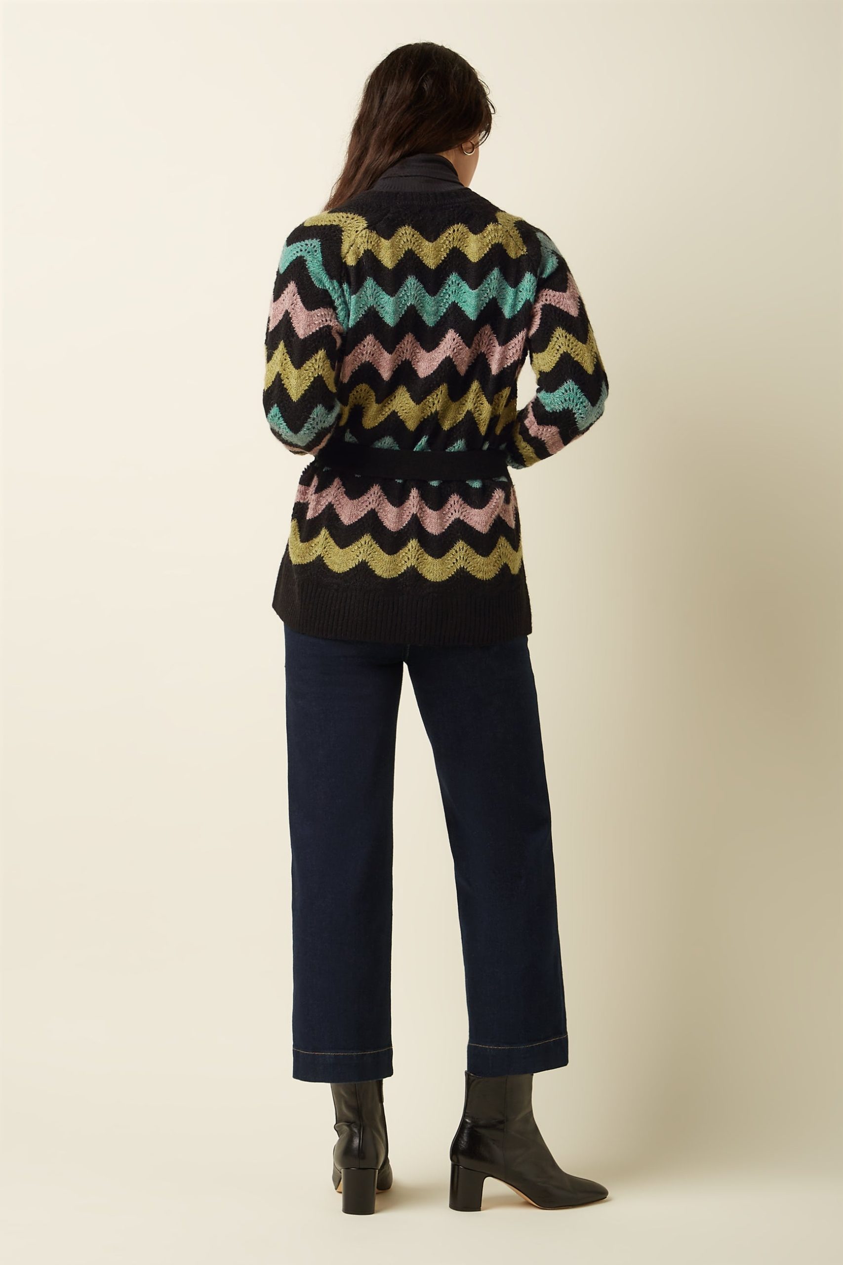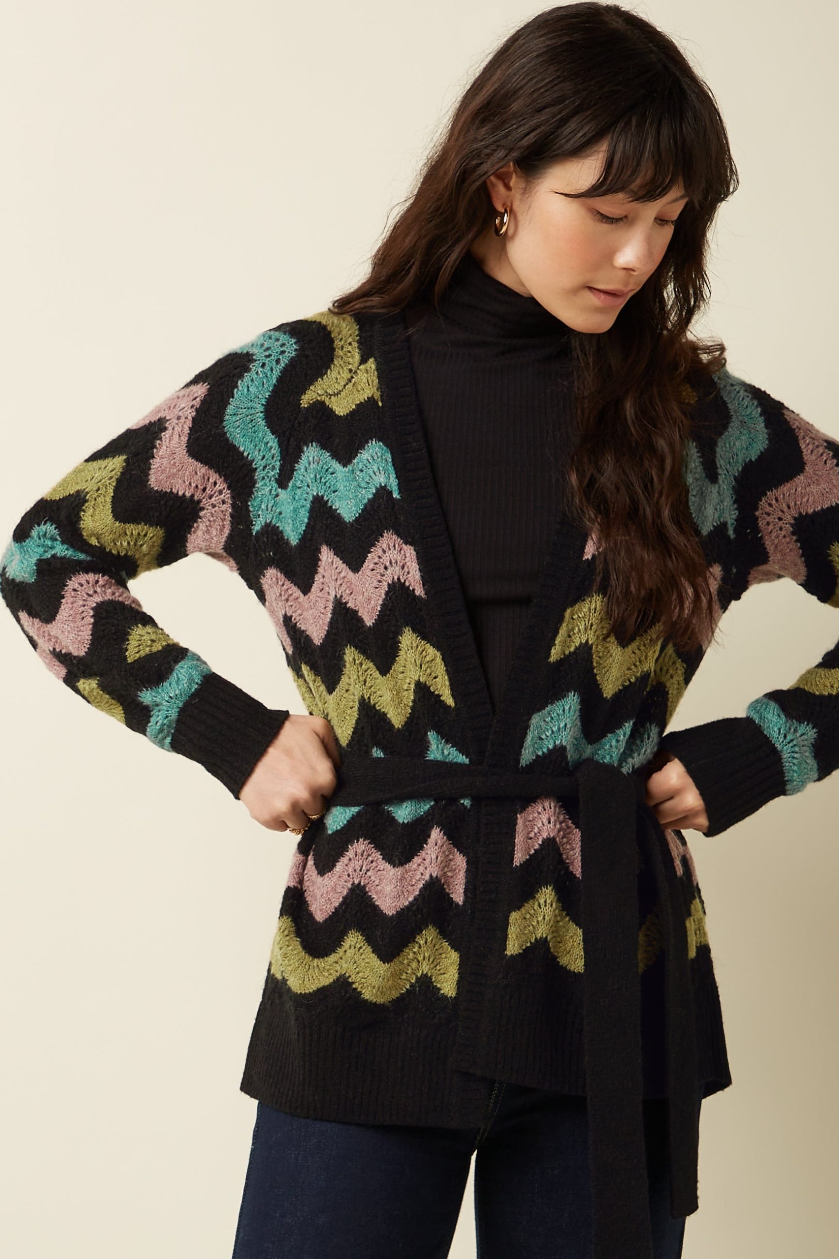 Our Cardi Belt offers versatile layering possibilities. It features a tie belt and a relaxed fit, perfect for a laid-back style.