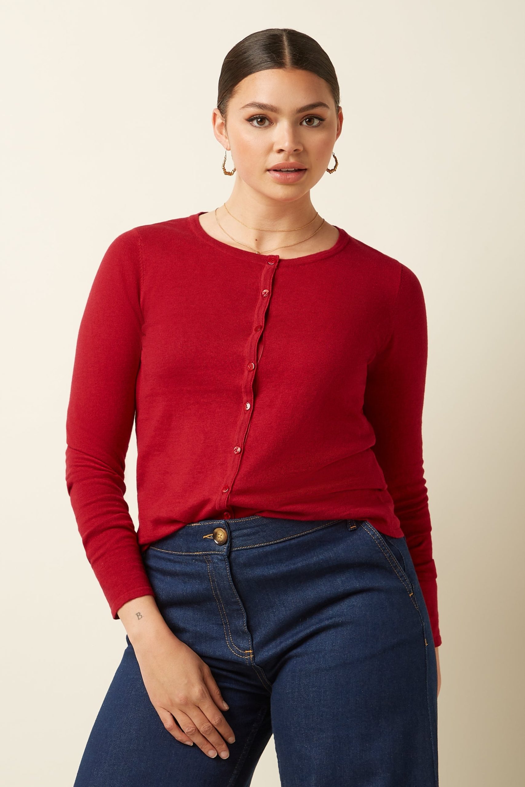 Crafted from stretch cotton knit, this long-sleeve piece offers a plain design with a round neckline and a regular fit. It features a button closure, ensuring both comfort and practicality.