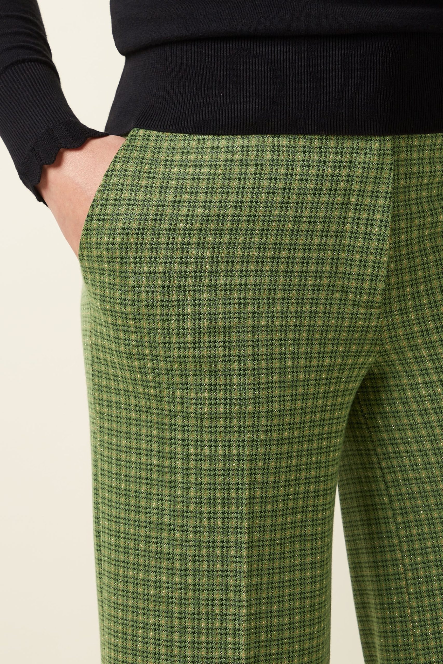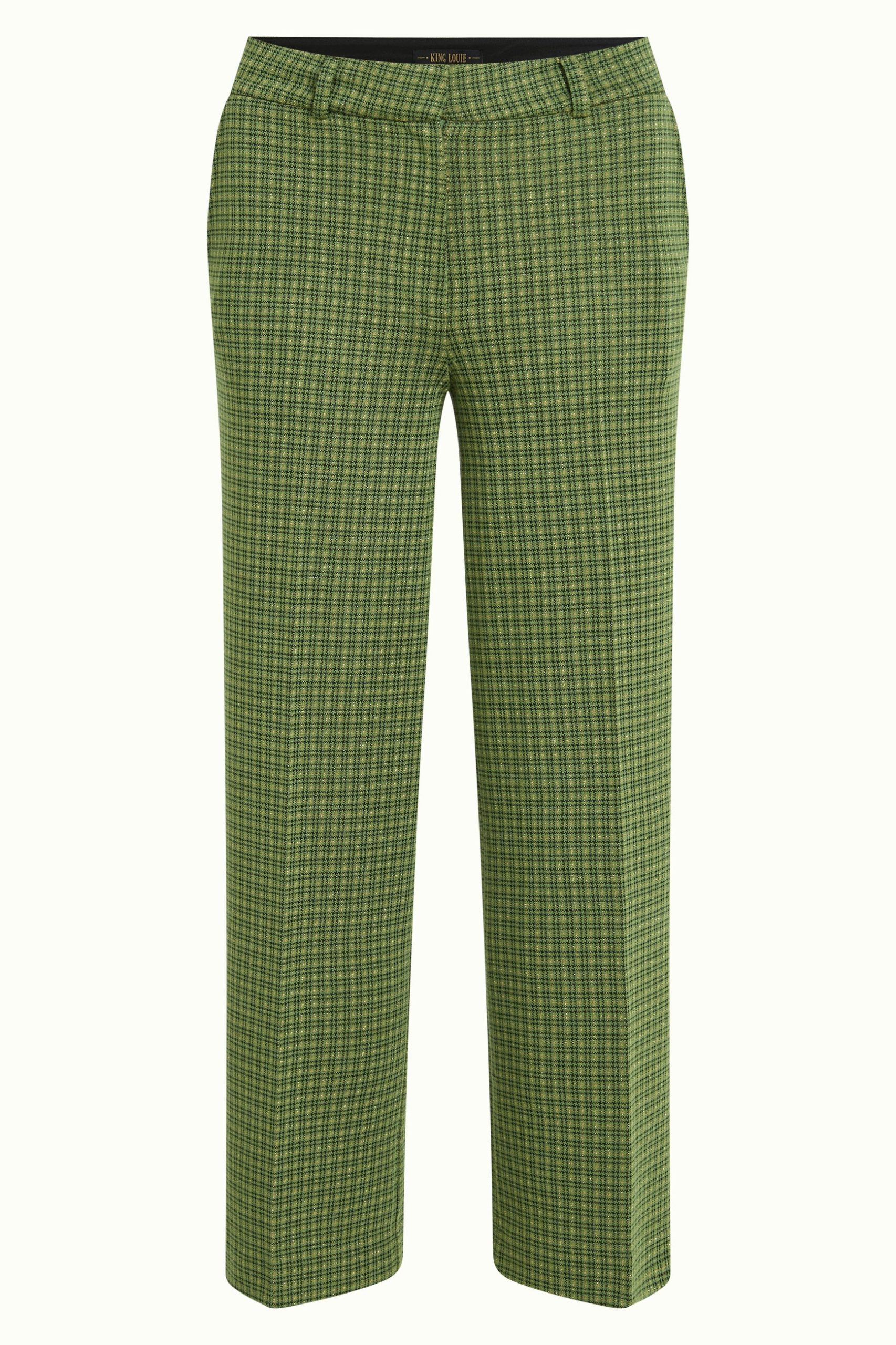 The Federica Pants Ivy Check feature a mid waist with a waistband and belt loops for a tailored fit. Crafted from non-stretch knit jacquard, these fitted, cropped straight pants showcase a glittering checkered pattern and secure with a zip and hook closure for a refined, sophisticated look.
