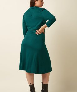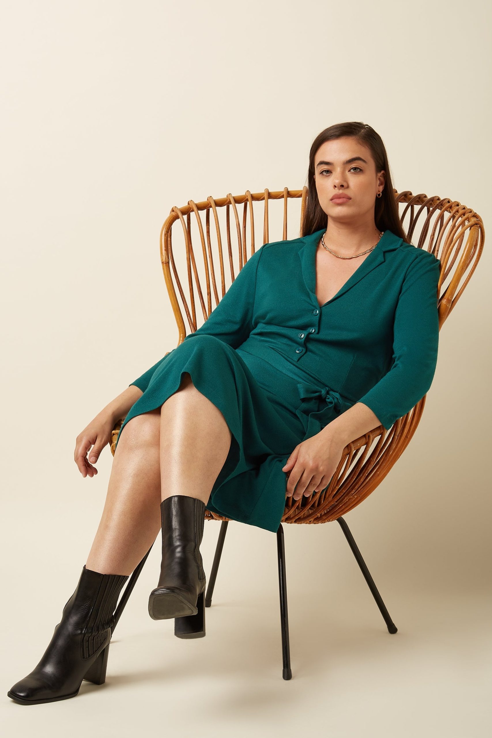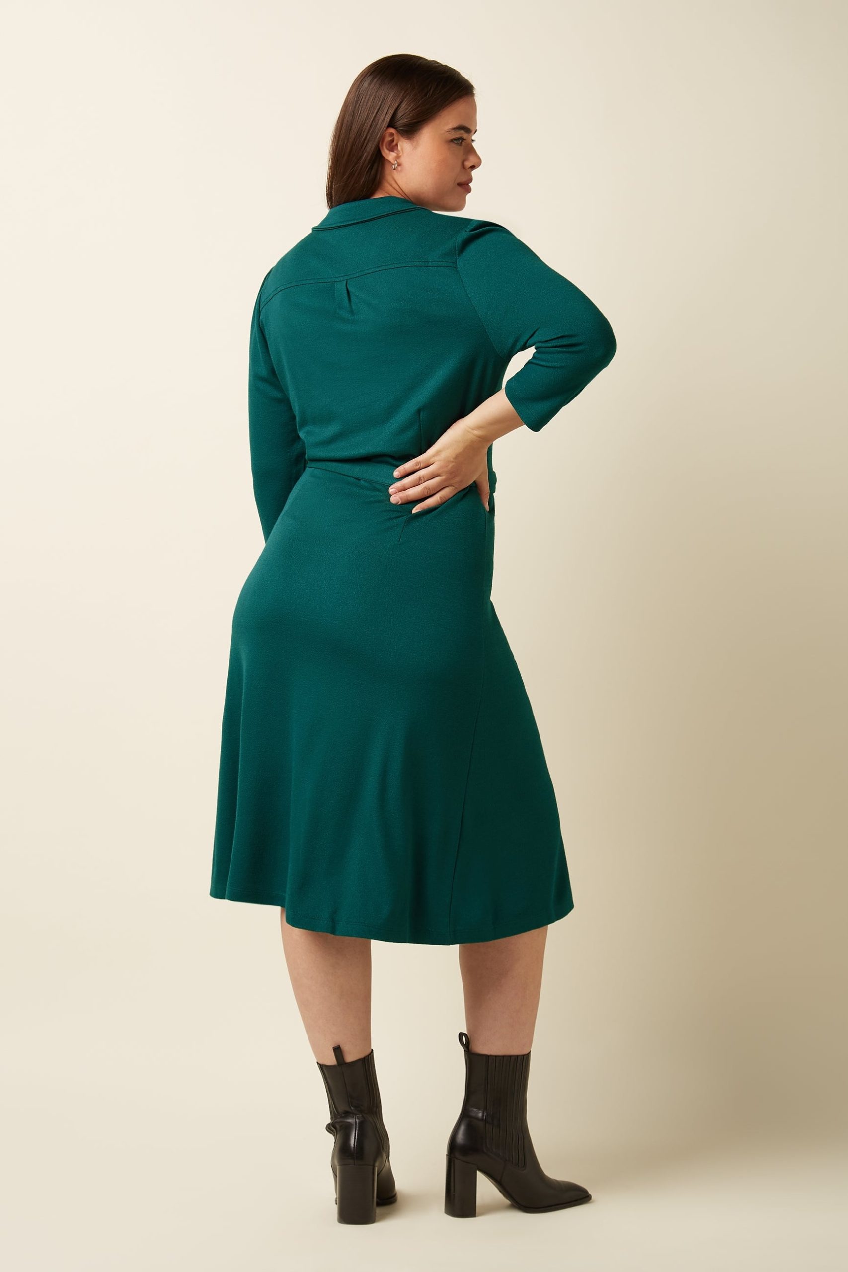 The Lola Dress Milano Crepe combines a sophisticated lapel collar and long sleeves with a flattering tie belt and flared midi length. Made from stretch viscose, it offers comfort and elegance, finished with a classic button closure for timeless style.