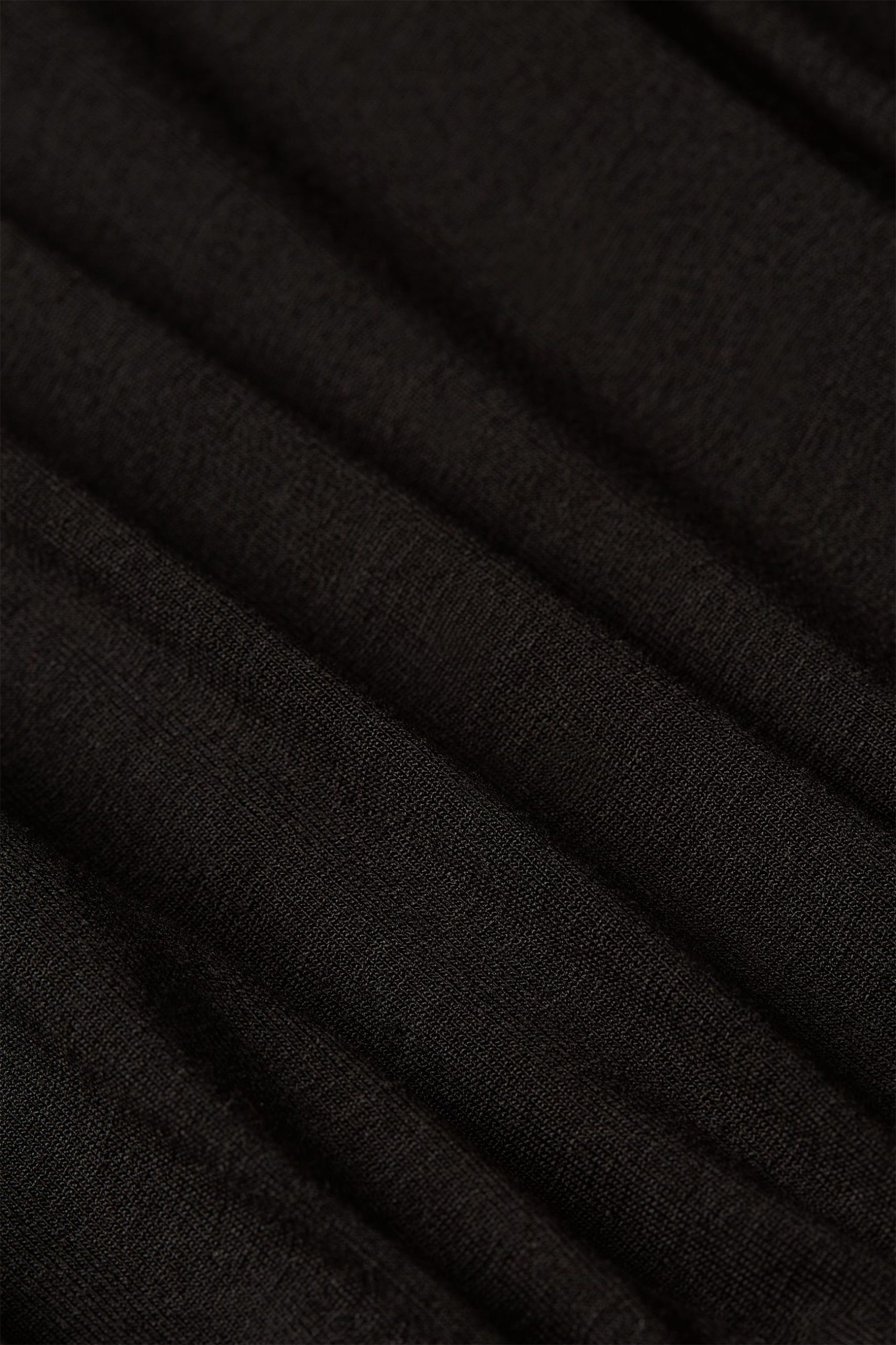 Long jersey dress with a unique smock-elastic top that adds a touch of flirty and femininity. The straight line silhouette creates a modern look, perfect for different occasions.